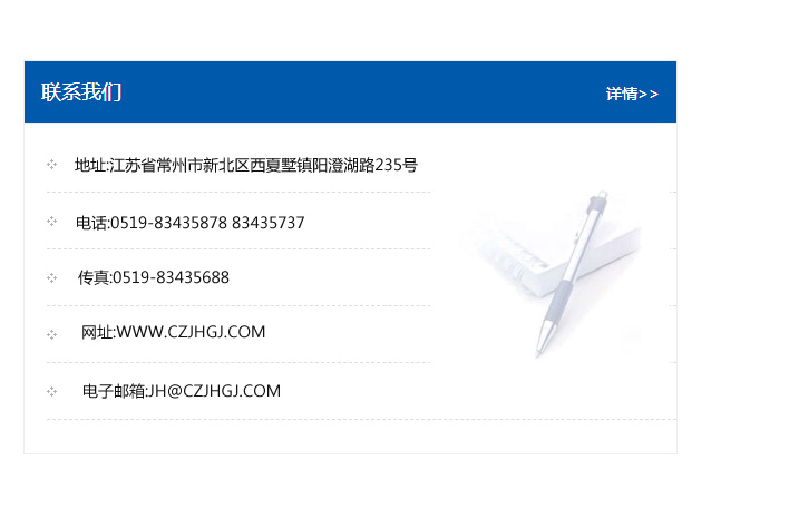 地址:常州市新北區友邦商務大廈1幢16、17層  電話:0519-85101652  傳真:0519-85112595  郵編:213022  網址:www.cz-jiayue_cn.lzjxswjd.com  郵箱:xiajifengaa@163.com